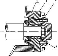 老產(chǎn)品的軸承檢修困難。由于各個(gè)軸的軸承體均焊在外殼上,設(shè)備運(yùn)行一定時(shí)間后軸承及密封件需要更換時(shí),密封件無(wú)法取出,使軸系維修產(chǎn)生困難。設(shè)備改造成SF型后軸系部分采用圖2所示結(jié)構(gòu)。