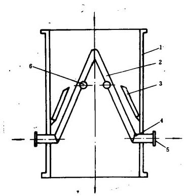 1-簡(jiǎn)體2—活動(dòng)?xùn)鸥窬W(wǎng)3-防渦流板4—收球網(wǎng)板5—出球口6—轉(zhuǎn)動(dòng)軸