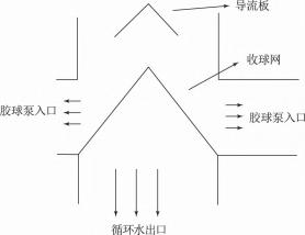 該廠通過提高收球網的位置來減少膠球在凝汽器循環(huán)水出水管中的活動空間,同時設置一個膠球導流板,如圖6所示,引導膠球進入膠球泵入口位置。