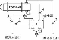 (2)從催化液化氣精制區(qū)E3010循環(huán)水進(jìn)口處,引循環(huán)水進(jìn)在線清洗機(jī),逐臺對冷凝器進(jìn)行在線清洗;