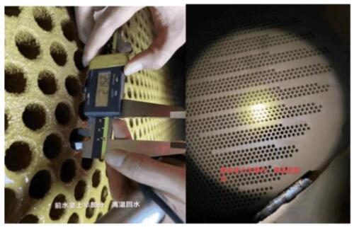 通過檢修期間對電廠機(jī)組凝汽器內(nèi)部鈦管的檢查發(fā)現(xiàn),凝汽器內(nèi)部鈦管結(jié)垢嚴(yán)重,特別是高溫回水區(qū)域特別明顯。實際直徑參數(shù)