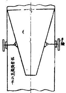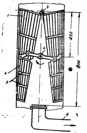 關(guān)于開關(guān)膠球清洗裝置也有二種方案,一種是現(xiàn)采用的,優(yōu)點是開關(guān)方便一些;缺點是杠桿系統(tǒng)和旋轉(zhuǎn)軸都“貫穿”循環(huán)水管,增大了水阻,即使處于“短路”狀態(tài)此水阻仍去不掉。另一種利用類似于潤門開關(guān),在收球網(wǎng)之外開和關(guān),(圖3乙)它在“短路”狀態(tài)時,開啟機構(gòu)已旋出循環(huán)水管外,可減少短路時的水阻,當然機構(gòu)稍復(fù)雜一點,開關(guān)稍費事。我們擬在”3機采用這種機構(gòu),以和“4機對比。