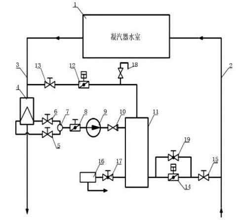 (2)實現(xiàn)膠球系統(tǒng)運行的時候,從循環(huán)水出水口進入膠球泵的熱水能夠回到循環(huán)水出水口而不會送入循環(huán)水入水口,提高循環(huán)水系統(tǒng)的經(jīng)濟性,