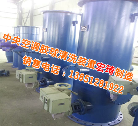 1、全自動(dòng)在線(xiàn)清洗裝置是提高制冷機(jī)組熱效率的重要設(shè)備。主要由收球網(wǎng)、膠球循環(huán)泵、裝球器、程序控制系統(tǒng)、清洗膠球及閥門(mén)管路等部件組成。它借助水流的作用將直徑略大于冷凝器冷卻管內(nèi)徑的清潔膠球擠過(guò)冷卻管,對(duì)冷卻管內(nèi)壁進(jìn)行反復(fù)擦洗,并把雜質(zhì)帶出,從而提高冷卻管清潔度,避免垢下腐蝕,延長(zhǎng)冷卻管使用壽命。該裝置可在機(jī)組不停機(jī)、不減負(fù)荷的條件下使用。