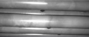 清洗后,前7效蒸發(fā)器換熱管外表面與末效冷凝器換熱管內(nèi)表面都清潔、光滑,無明顯附著垢,無點(diǎn)蝕及二次浮銹,并有致密氧化膜,見圖6~圖7。