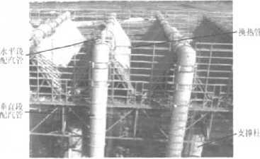 先對(duì)排汽管、配汽母管和配汽管(圖5)進(jìn)行人工沖洗和清理。排汽管和配汽母管、配汽管直徑較大,先在內(nèi)部搭設(shè)架子,用電動(dòng)鋼絲刷對(duì)管壁進(jìn)行徹底清理,再?gòu)纳贤掠酶邏核畼屵M(jìn)行沖洗,將雜質(zhì)沖到配汽母管和排汽管水平段,然后徹底清除排汽管、配汽母管和配汽管水平段所有顆粒雜質(zhì)。另外,清理配汽管時(shí),不允許雜質(zhì)進(jìn)入換熱管內(nèi)。