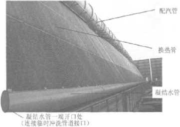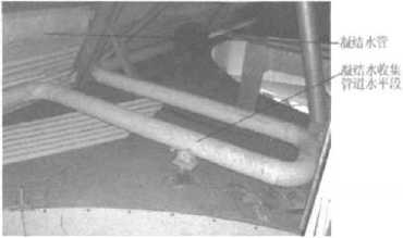 凝結(jié)水收集管的清理。凝結(jié)水收集管用于匯集各個(gè)換熱單元冷凝下來(lái)的凝結(jié)水,并引流至熱井,管徑一般較小。這段管道水平段較多,1臺(tái)600MW機(jī)組空冷系統(tǒng)凝結(jié)水收集管水平管(dl68mm,圖7)累計(jì)長(zhǎng)達(dá)約960m,現(xiàn)在的冷態(tài)沖洗因沖洗水流量太小無(wú)法達(dá)到,所以特別建議對(duì)凝結(jié)水收集管進(jìn)行單獨(dú)且大流量沖洗,仍然用沖洗凝結(jié)水管時(shí)安裝的臨時(shí)沖洗管道,將原先的凝結(jié)水管沖洗出口端封閉,打開(kāi)凝結(jié)水收集管的進(jìn)水閥門,將收集管上的排污法蘭打開(kāi),用高速水流將收集管內(nèi)部的污物沖出系統(tǒng),從凝結(jié)水收集總管處的排污法蘭處排放。沖洗至出水清澈、無(wú)大顆粒雜質(zhì)為止。然后關(guān)閉排污法蘭,仍用臨時(shí)沖洗水對(duì)凝結(jié)水收集管及熱井進(jìn)行沖洗,將雜質(zhì)沖到熱井,后清理熱井。人工清理熱井時(shí),可以先進(jìn)行掃除,然后用海綿將泥水吸凈,后,用面團(tuán)粘除細(xì)小的機(jī)械微粒。此外,建議凝結(jié)水收集管在安裝時(shí)整體呈一定的斜率,向下連接至熱井。