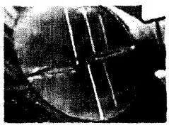 由于現(xiàn)場空間有限,不可能在收球網(wǎng)上方留出相當?shù)闹惫芏,因此,在凝汽器出水彎管段中水平焊接一不銹鋼折流板,見圖2。該折流板位于彎管段中心線處,將循環(huán)水流一分為二,用以規(guī)整彎管內循環(huán)水流,使循環(huán)水能夠均勻地流經(jīng)收球網(wǎng),以利于膠球收集。