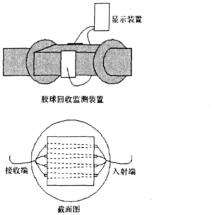 該膠球回收自動(dòng)監(jiān)測(cè)系統(tǒng)的監(jiān)測(cè)裝置吸取了國(guó)外同類(lèi)設(shè)備的優(yōu)點(diǎn),在此基礎(chǔ)上考慮到實(shí)際情況的復(fù)雜性,并對(duì)設(shè)備進(jìn)行了改造,將原來(lái)的一組檢測(cè)探頭增加為四組探頭(按設(shè)定好的距離安裝),封住了膠球通過(guò)管道的整個(gè)橫截面,使得膠球無(wú)論在什么位置通過(guò)都可以保證被撲捉到。實(shí)際測(cè)試中假設(shè)膠球清洗裝置系統(tǒng)管道中水流的速度為3米/秒,換句話說(shuō)撲捉膠球的頻率大不超過(guò)150次/秒(遠(yuǎn)大于實(shí)際水流的速度),該套系統(tǒng)檢測(cè)探頭采用HPX系列光纖光電感應(yīng)器。光纖放大器為HPX-T1型,光纖為FT8-310型。顯示儀表為HB智能雙數(shù)顯計(jì)測(cè)器。兩種設(shè)備的檢測(cè)及顯示速度都遠(yuǎn)大于水流的速度。所以在設(shè)備上保證了不會(huì)出現(xiàn)丟漏球的發(fā)生,保證了檢測(cè)的精度。其次為了保證在檢測(cè)的過(guò)程中不重復(fù)計(jì)數(shù),在膠球清洗裝置系統(tǒng)中增加了一臺(tái)收球室,這樣就可以控制在檢測(cè)的過(guò)程中膠球只進(jìn)行一個(gè)循環(huán),達(dá)到不重復(fù)計(jì)數(shù)的目的。